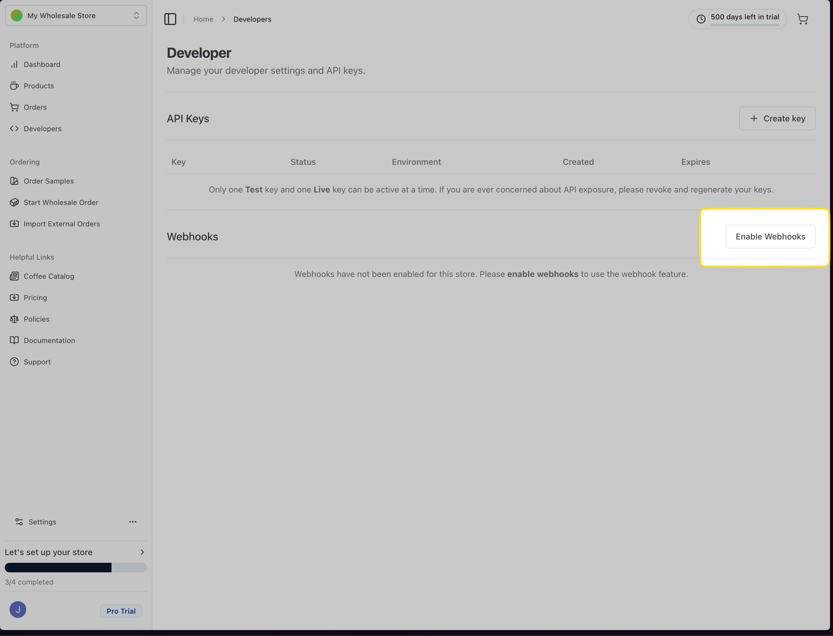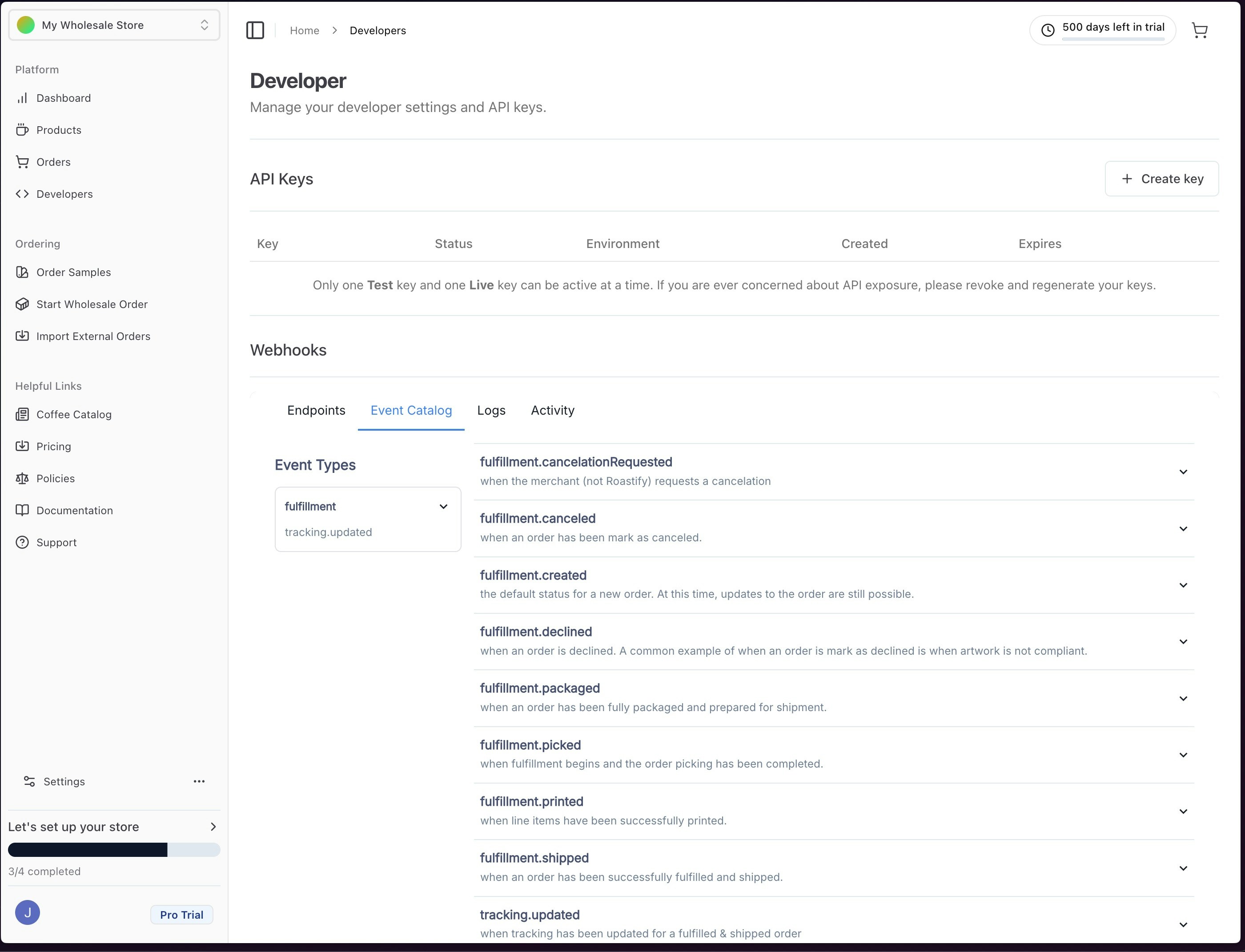 Go to the Developer page in your Roastify dashboard and enable the Developer API.